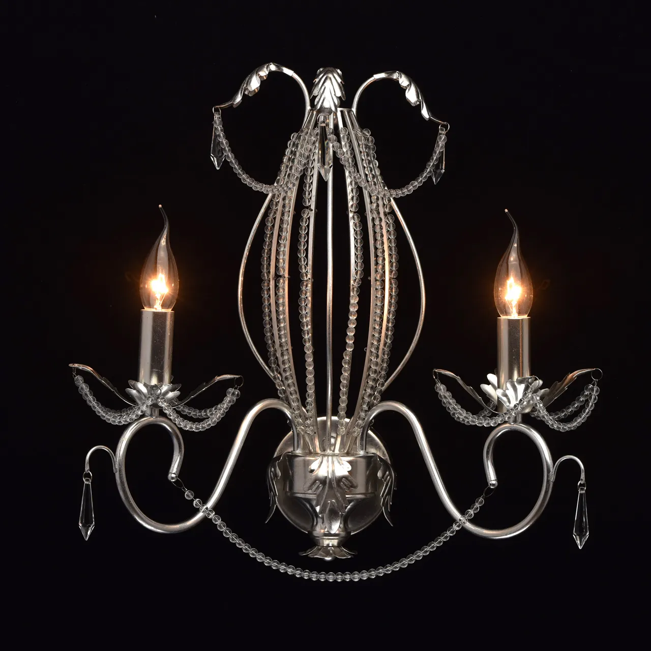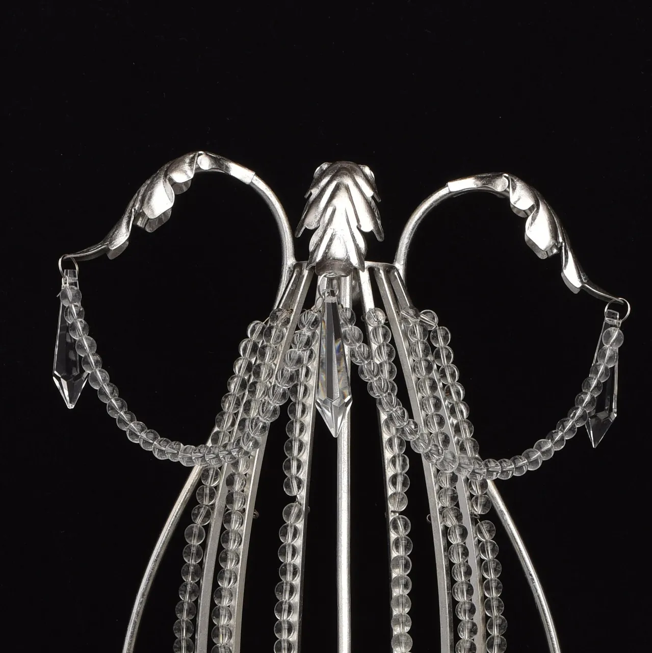 Металлическое основание, покрытое сусальным серебром, декоративные подвески из прозрачного хрусталя
