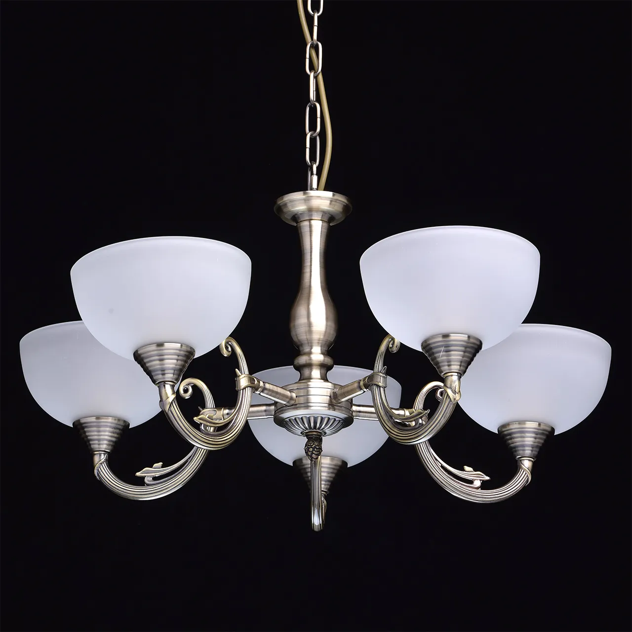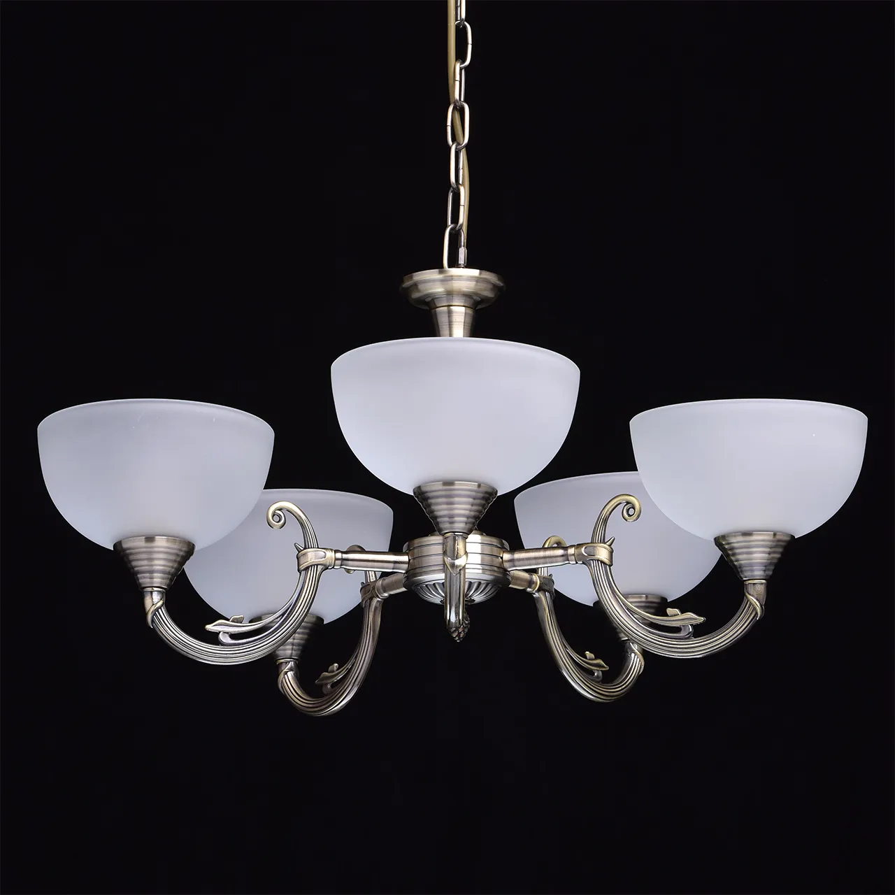 Алюминиевое основание, плафоны из матового стекла.